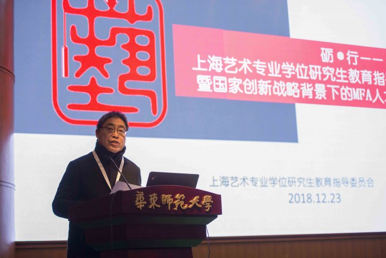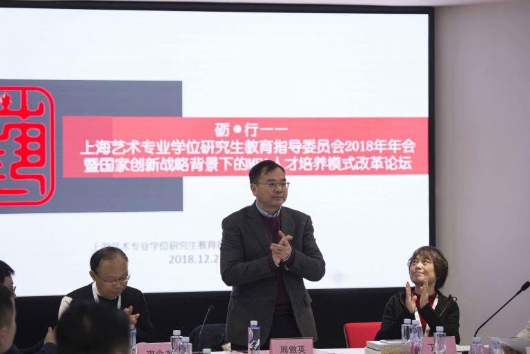 2018年12月23日,由上海艺术专业学位研究生教育指导委员会主办,华东师范大学设计学院承办的上海艺术专业学位研究生教育指导委员会2018年年会暨国家创新战略背景下的MFA人才培养模式改革论坛分别在我校设计学院与逸夫楼举行。华东师范大学副校长周傲英、全国MFA教指委秘书长丁凡、副秘书长宋慧文、上海市教委学位办主任束金龙出席会议并致辞。上海市MFA教指委主任刘晓刚、冯信群等全国MFA教指委委员及上海14所MFA专业硕士点所在院校的院长、MFA教指委员等200多人参加了此次年会与论坛。在海艺术专业学位研究生教育指导委员会2018年年会上,我校MFA中心主任许红珍被评为首届“上海艺术专业学位研究生教育指导委员会工作贡献奖”。设计学院院长魏劭农教授主持了国家创新战略背景下的MFA人才培养模式改革论坛并作主旨发言,向与会者介绍了华东师范大学及设计学院在MFA教学与人才培养模式改革方面所取得的成绩和经验。