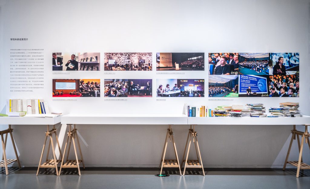 四号厅展示了由学生们高度参与的学院学术与科研成果,充分体现了学院教学、科研、社会服务一体化建设的思路,展厅中展示的新中国工业设计史和上海优秀建筑(1949—2000)研究以及可持续设计的应用研究等科研成果,填补了许多国内研究的空白,充分显示了学院坚持回归科研与学术的本体,在设计与设计教育基础理论研究和应用性研究及国际学术交流等方面所取得的成就。